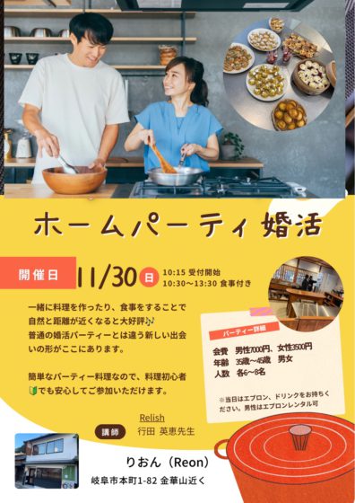 今日は岐阜から大嶋です。 11月30日 10時15分 受付開始 10時30分~13時30分 食事つき